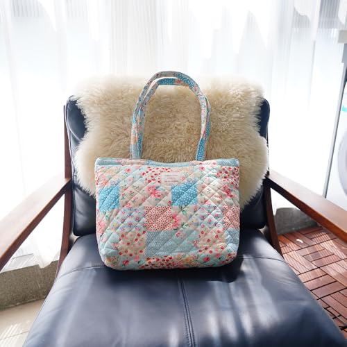 Floral Quilted Cotton Shoulder Bag for Women Daily Use Medium Size Handbag Large Capacity Thickened Design Tote