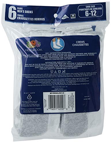 HOT ! Fruit Of The Loom Men's 6 Pack Cushioned Crew Socks