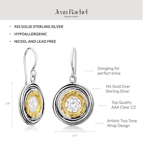 Jean Rachel Jewelry - Mixed Metal Two Tone Earrings for Women – CZ Wire Wrap Dangle Earrings – 925 Sterling Silver & 14K Gold Over Silver – Hypoallergenic Artistic Jewelry