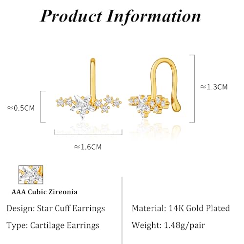 • 【WONDERFUL GIFT】 The NECOCY gold Starburst ear cuff makes a perfect gift, everyday wear, birthdays, weddings, Valentine's Day, Mother's Day, Christmas, anniversaries, and more. It's a beautiful surprise