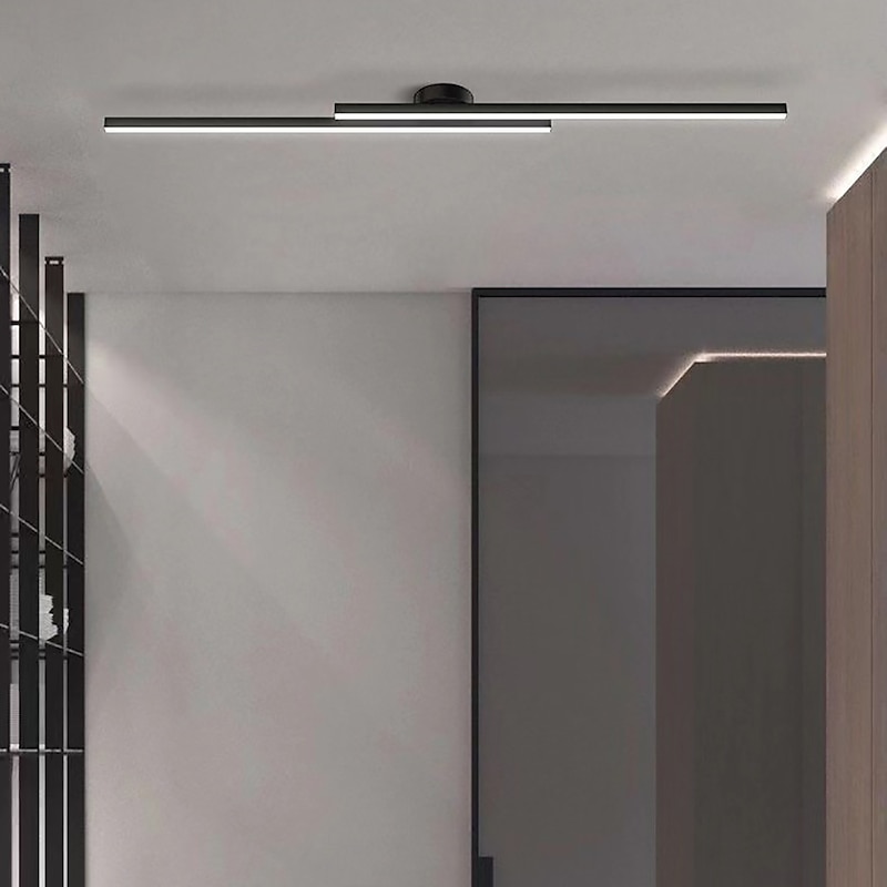 Minimalist Ceiling Light Long Strip Semi Flush Mount Ceiling Lamp, Modern Chandeliers Linear Close-to-Ceiling Lights for Living Room Bedroom Hallway Kitchen ONLY DIMMABLE with REMOTE CONTROL 110-240V 2