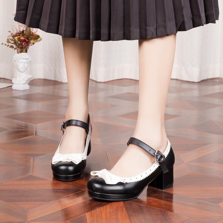 More information about Women's Lolita Ruffles Bows Square Heel Platform Mary Janes Pumps