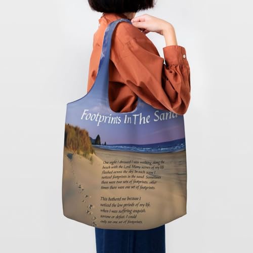 HOT ! Footprints In The Sand Poem Canvas Tote Bag For Women – Lightweight & Durable Polyester, Oversized Carryall For Commuting, Shopping & Travel