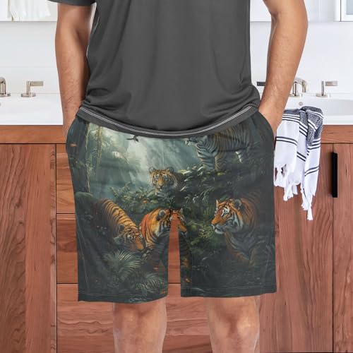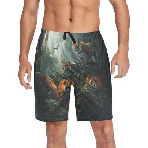 Men's Pajama Bottoms, Tigers Pajamas Shorts Short Sleep Pants Lounge Wear Sleepwear Pjs 1