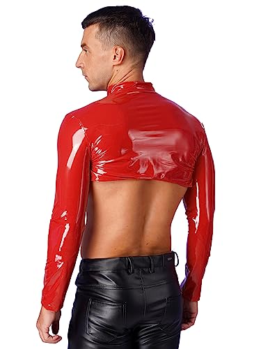 - Men crop top adopts patent leather, and designs with stand collar and front zipper, long sleeve, which looks cool and chic