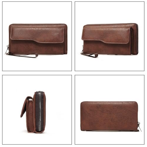 Large Wallet Clutch Long Leather Phone Purse ,2-Fold Design, Multiple Card Slots, Wristle Money Organizers with Coin Purse and Smooth Zipper(dark brown 4
