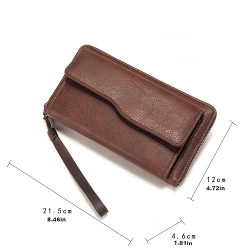 sought-after ! Large Wallet Clutch Long Leather Phone Purse ,2-Fold Design, Multiple Card Slots, Wristle Money Organizers with Coin Purse and Smooth Zipper(dark brown