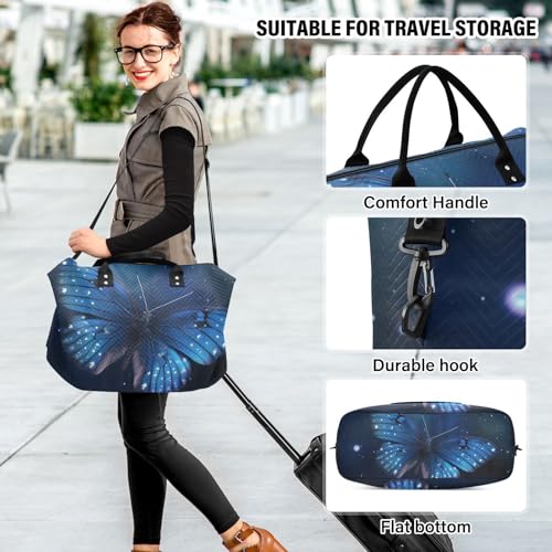 Large Travel Duffel Bag, Blue Butterfly Night Sports Tote Gym Bag, Shoulder Weekender Overnight Bag for Women Men, Carry On Luggage with Toiletry Bags 7