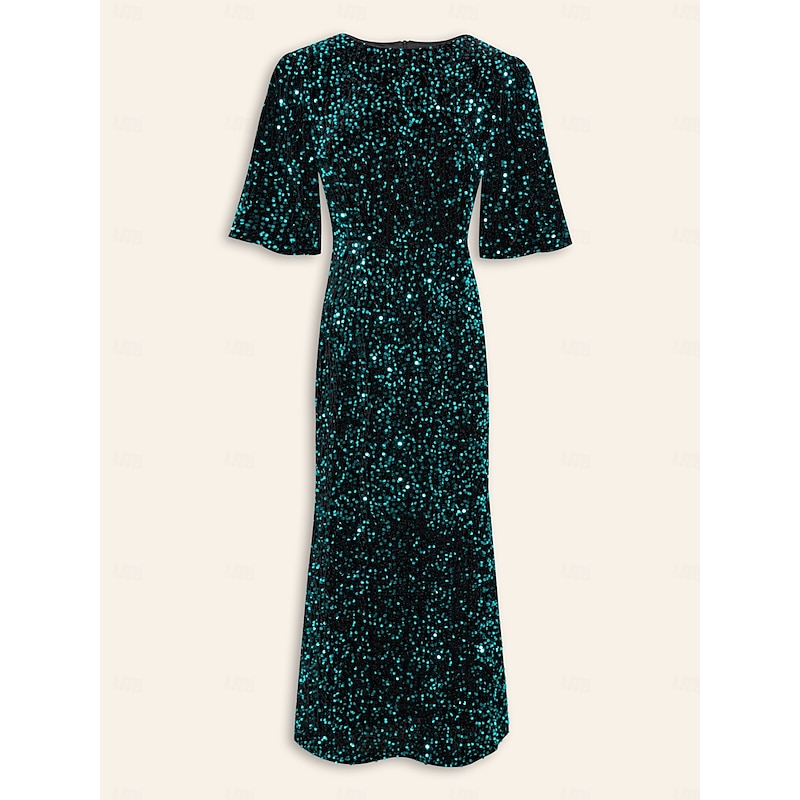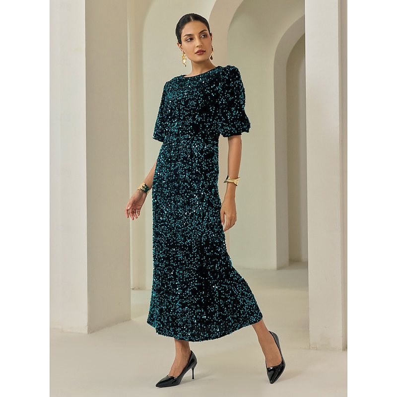 Women's Velvet Dress Sequin Dress Prom Dress Cocktail Dress Elegant Glitters Puff Balloon Sleeve Anniversary Party Party Evening Wear Sequin Short Sleeve Navy Blue Purple Green Spring & Fall 12