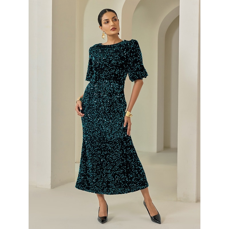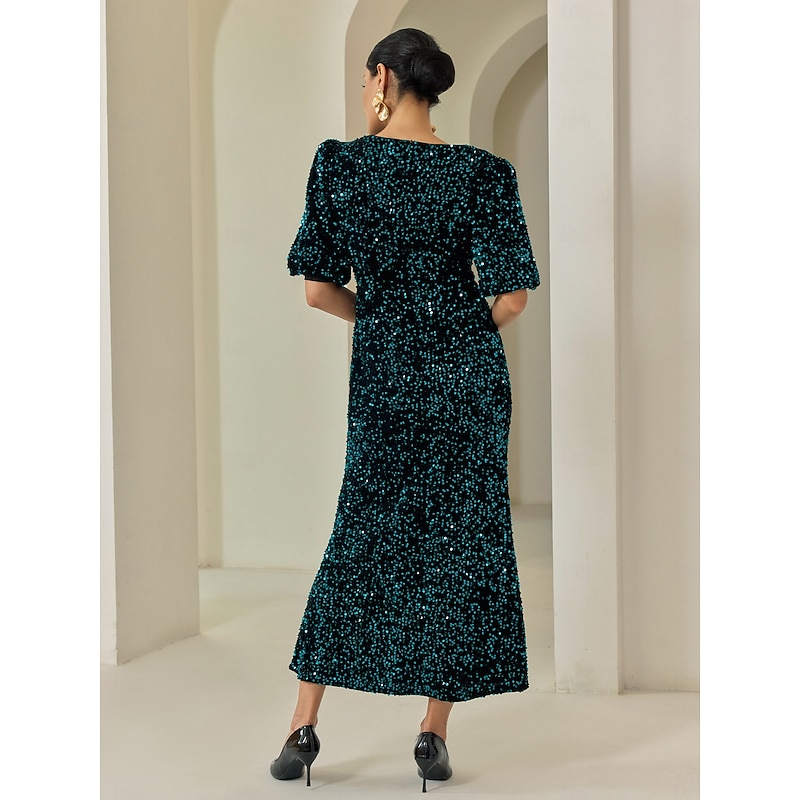 HOT ! Women's Velvet Dress Sequin Dress Prom Dress Cocktail Dress Elegant Glitters Puff Balloon Sleeve Anniversary Party Party Evening Wear Sequin Short Sleeve Navy Blue Purple Green Spring & Fall