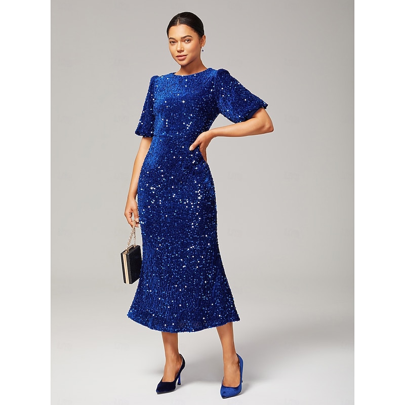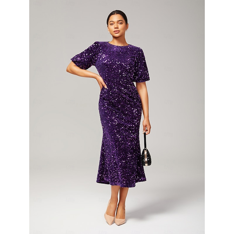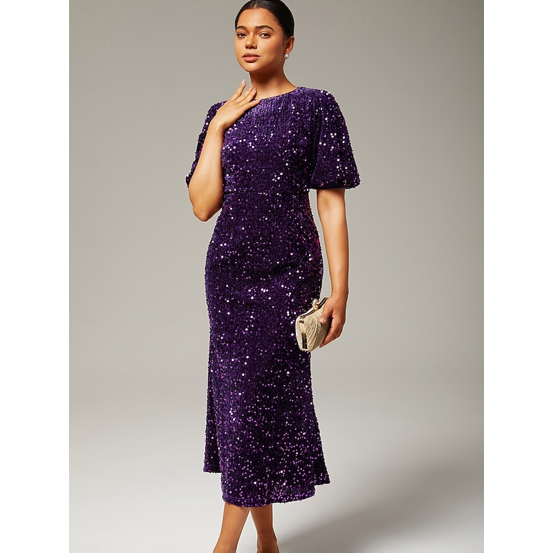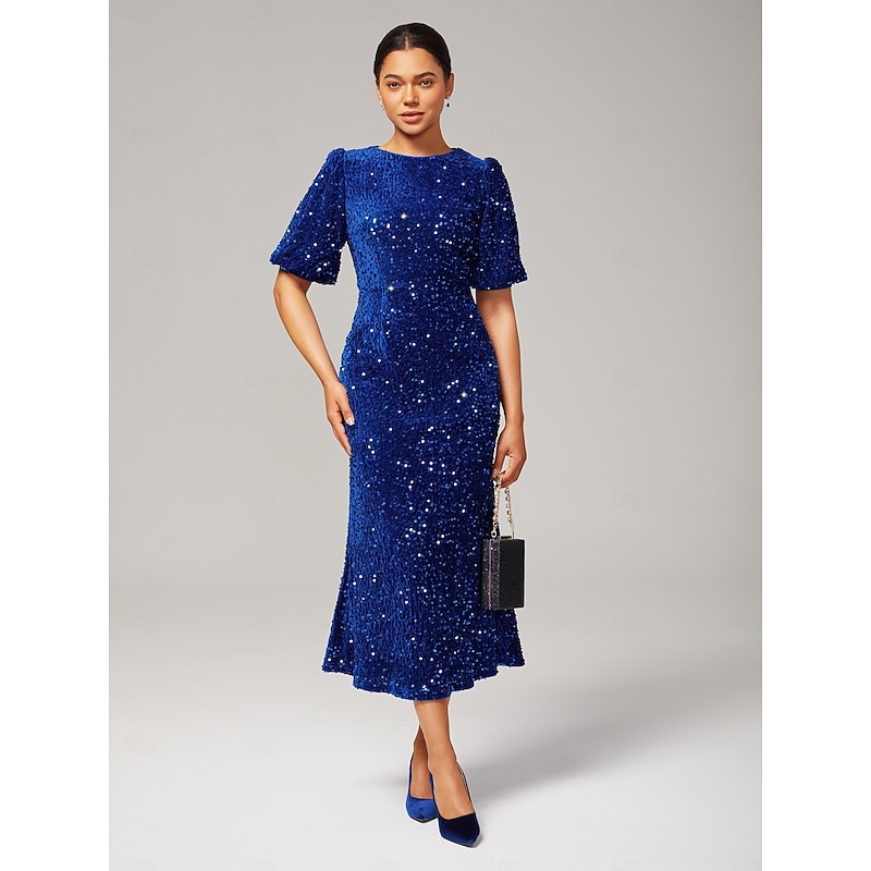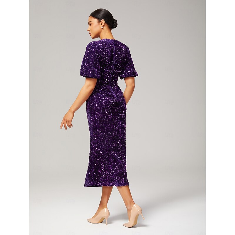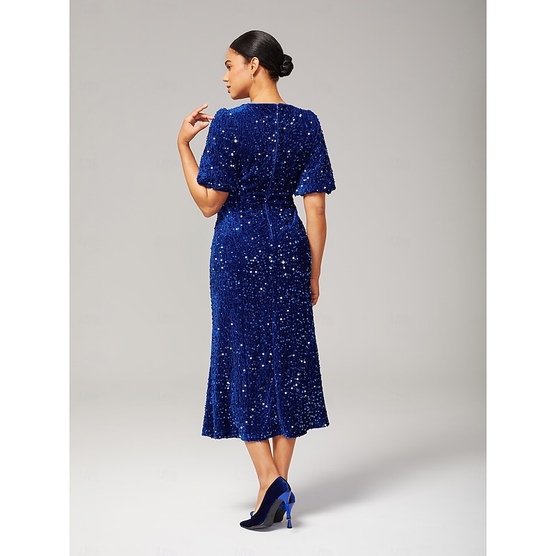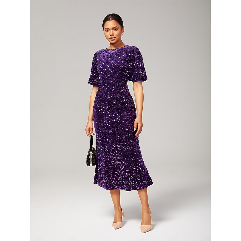 Women's Velvet Dress Sequin Dress Prom Dress Cocktail Dress Elegant Glitters Puff Balloon Sleeve Anniversary Party Party Evening Wear Sequin Short Sleeve Navy Blue Purple Green Spring & Fall 26