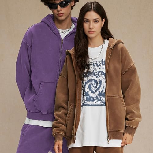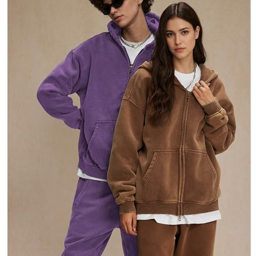 More information about Mens Fleece Hoodies Double Zip Up Cotton Sweatshirt Oversized Acid Wash Hooded Jackets Vintage Sweatshirt