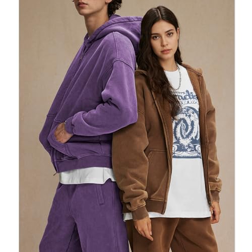 • Mens Fleece Hoodies Features: The mens fleece hoodies sweatshirt, hooded jackets, 100% cotton, double zip up, hooded without drawstring, long sleeve, 2 welt pockets, acid wash outer, fleece liner, Stretch ribbed cuffs and hem,casual oversized fit,essential sweatshirt in cold weather.