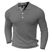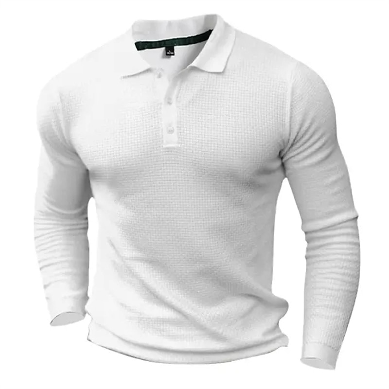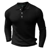 More information about Men's Waffle Polo Shirt Golf Shirt Casual Holiday Lapel Long Sleeve Fashion Basic Plain Button Vintage Summer Regular Fit Black White Grey Waffle Polo Shirt