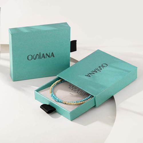 HOT ! OSIANA Dual-Strand Gemstone Bracelet for Women, 14K Gold Plated Layered Natural Stone Beads Boho Handmade Summer Jewelry