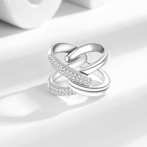 HOT ! 14K Gold Plated X Ring for Women Mixed Metal Ring Cubic Zirconia Rings Unique Criss Cross Promise Ring Non Tarnish Fashion Statement Knuckle Rings Jewelry Gifts