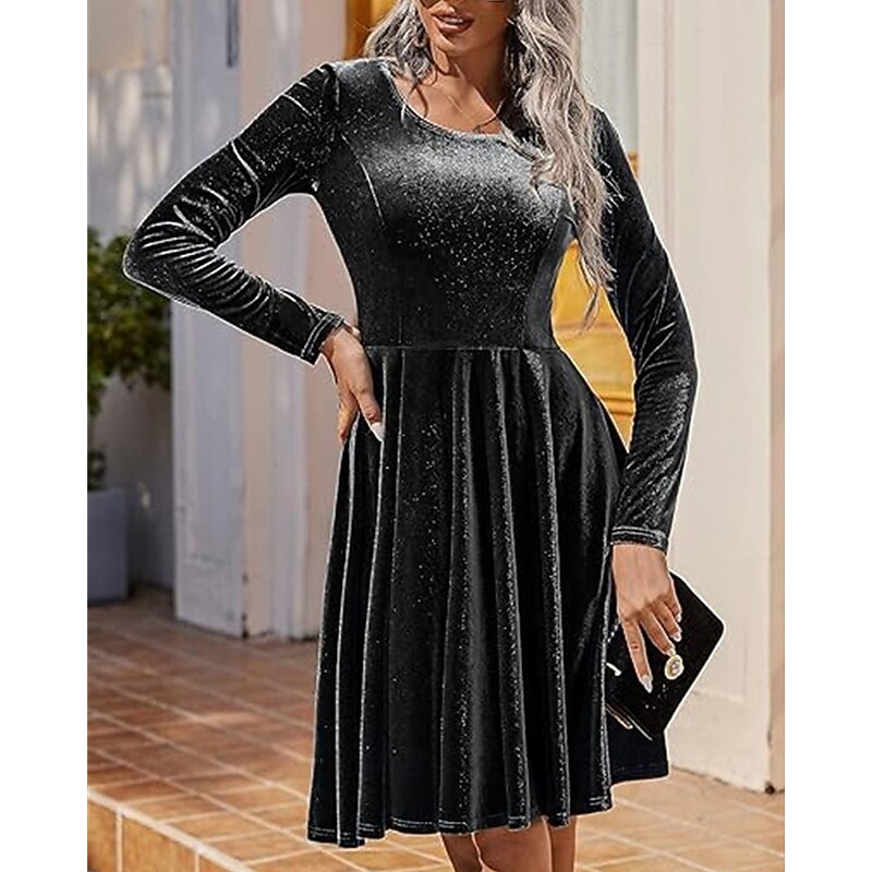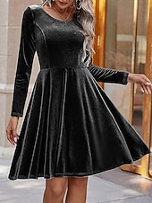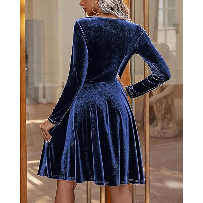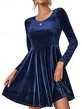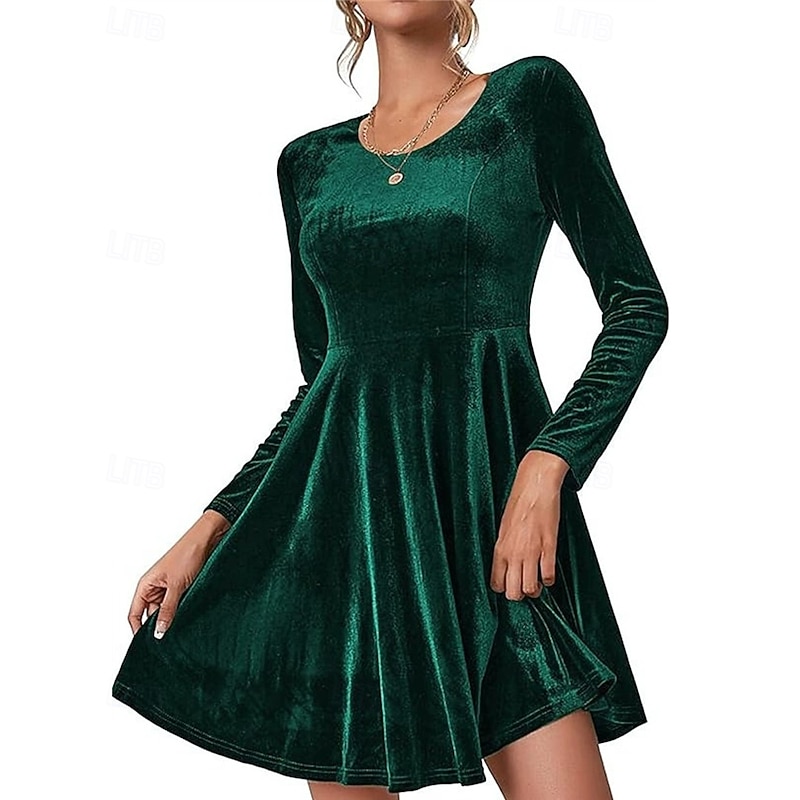 Women's Mini Dress Velvet Dress Cocktail Dress Fashion vintage present-day Outdoor Evening Party Holiday Regular Fit Plain Long Sleeve Crew Neck Black Burgundy Royal Blue Green Fall