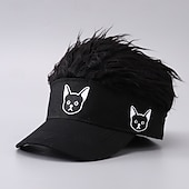 More information about Men's Visor Hat with Spiked Wigs Fake Hair Visor Wig Men Sun Hat Baseball Cap Wig Hat Black Coffee 100% Cotton Embroidered Fashion Casual Daily Festival Dog Adjustable Sunscreen Breathable