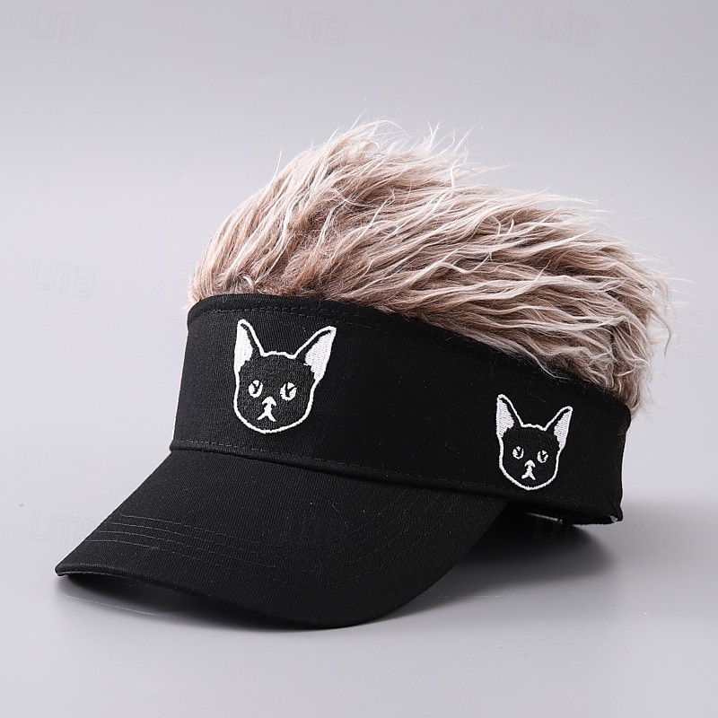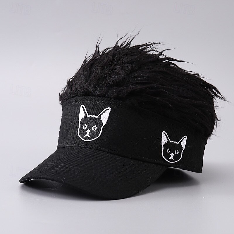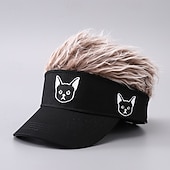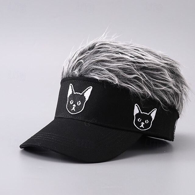 HOT ! Men's Visor Hat with Spiked Wigs Fake Hair Visor Wig Men Sun Hat Baseball Cap Wig Hat Black Coffee 100% Cotton Embroidered Fashion Casual Daily Festival Dog Adjustable Sunscreen Breathable