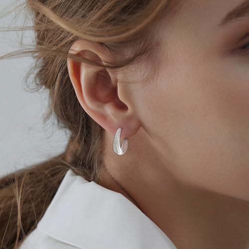 Hoop Earrings for Women Chunky Huggie Hoop Earrings Gold Sterling Silver Cz Oval Hoop Earrings Lightweight Chunky Thick Hoops Dainty Hypoallergenic Jewelry for Mom Wife Birthday Party Gifts 4