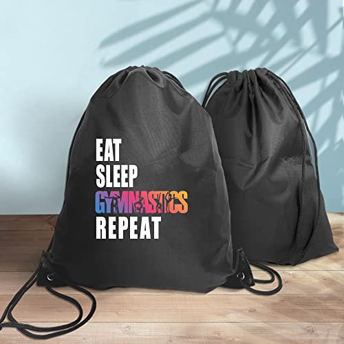 Haizct Eat Sleep Gymnastics Repeat Drawstring Backpack, Gymnasts Gift, Unisex Drawstring Backpack Bag for Gym Shopping Sport Yoga Dance Rehearsa 1