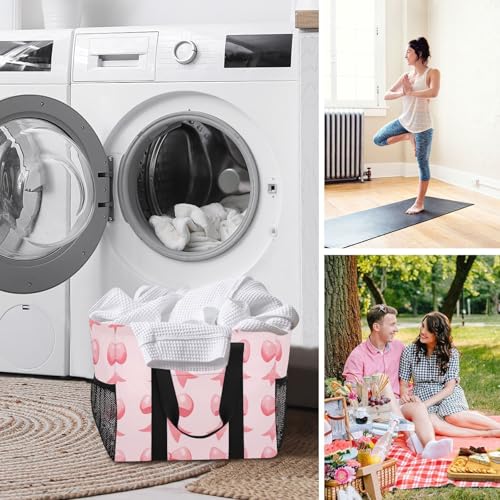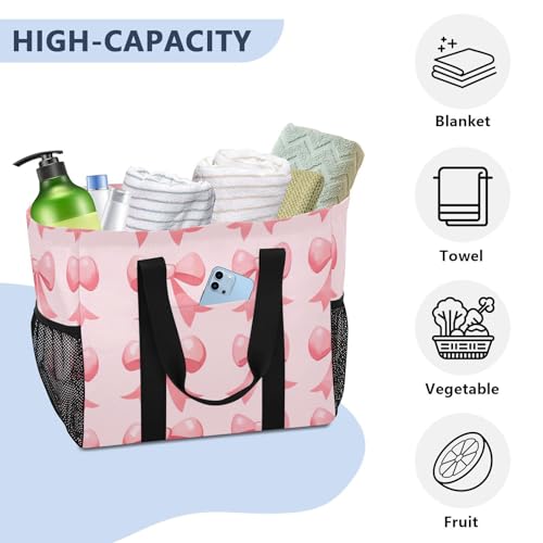 YETTASBIN Bow Pink Large Foldable Travel Tote Bag, Lightweight Waterproof Swim Pool Bag with Handles & Pocket for Beach Outdoor, Reusable Grocery Bag for Kitchen, Shopping 4