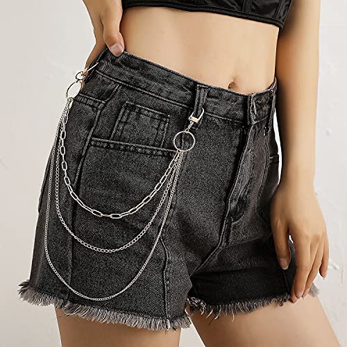 JKJF Punk Jeans Chains Hip Hop Pants Chain Multi Layer Pocket Chains for Women Men Girls Boys - 2 Pcs Silver 3