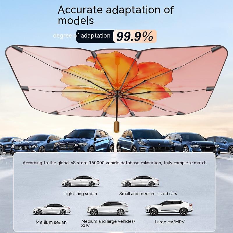 Highlights Product Selling Points: 1. Ultimate Sun Protection: This double-layer sunshade umbrella boasts a UPF50+ sun protection factor, ensuring maximum protection for both yourself and your car from harmful UV rays. 2. Exquisite Design: Every detail has been carefully considered, resulting in outstanding designs that not only provide functionality but also add aesthetic appeal. Additionally, this umbrella is designed to be easily foldable, making it convenient to store in your vehicle without taking up too much space. 3. High-Quality Materials: Unlike ordinary aluminum foil materials, this sunshade is constructed using nano titanium silver and composite peptide materials, ensuring superior durability and performance. 4. Perfect Gift Choice: This sunshade is elegantly packaged in a box, making it an ideal gift choice for women who value both style and functionality. 5. Universal Compatibility: Whether you own a passenger car, SUV, truck, or any other vehicle type, this sunshade umbrella is designed to suit a wide range of vehicle models, including SUVs, MPVs, sedans, trucks, and compacts.
