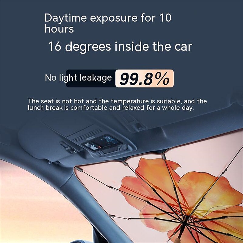 Car Sunshade Front Windshield Umbrella, Retractable Folding UV Protection Sunscreen with UPF 50+, Shading Rate 99.8% for Insulation 9