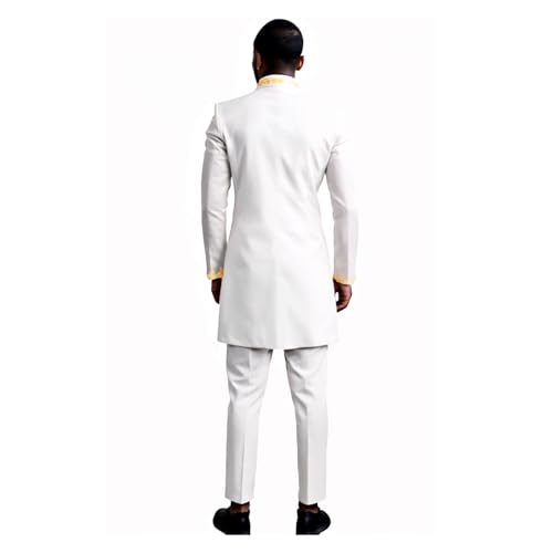 HOT ! Men`s Suit Gold Embroidery Blazer and Pants Set Dashiki Jacket Traditional African Clothes with Chain