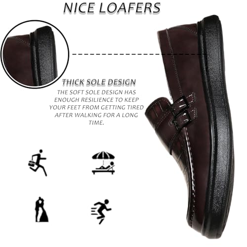 Men's Leather Printed Platform Loafers Retro Round Toe Double Buckle Soft Sole Non-Slip Business Work Shoes Slip-On Penny Loafers 5