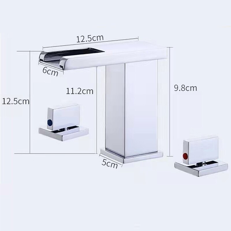 More information about Waterfall Bathroom Sink Mixer Faucet LED Light Deck Mounted Brass, Widespread 2 Handle 3 Hole Washroom Basin Vessel Taps with Hot and Cold Water Hose