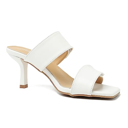 fereshte Womens 2 Strap Slip On Heeled Sandals Open Toe Adjustable Straps Kitten Heels Matte White 43 - US 10.5 7