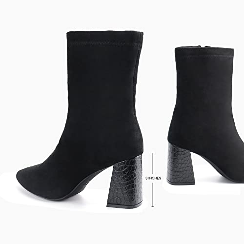 JABASIC Women Ankle Boots Pointed Toe Boots Side Zipper Chunky High Heel Booties 3