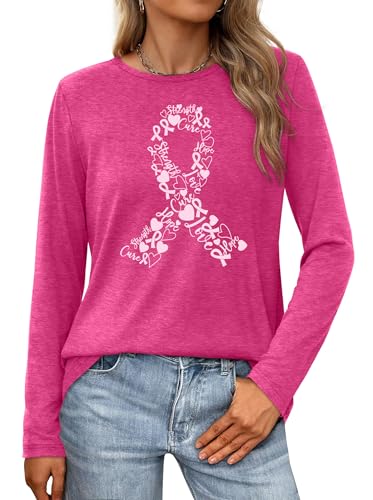 HOT ! Breast Cancer Shirts for Women Breast Cancer Awareness T-Shirt Pink Ribbon Long Sleeve Tee Tops