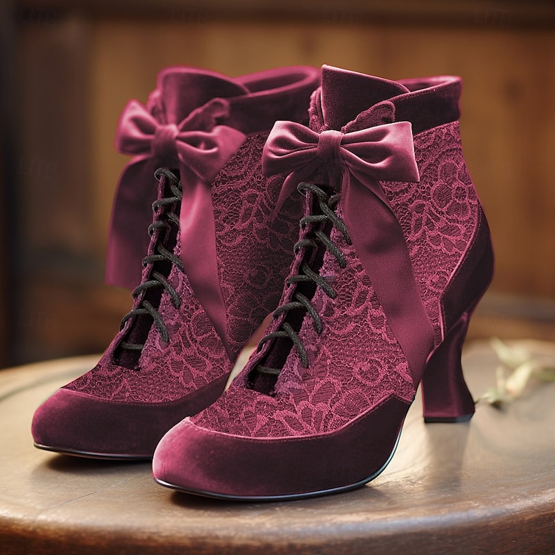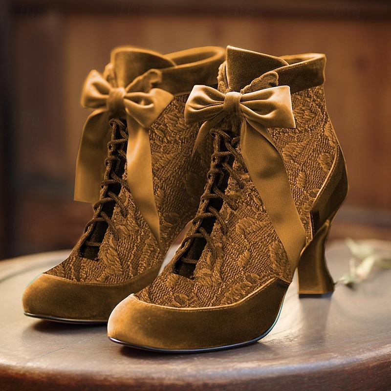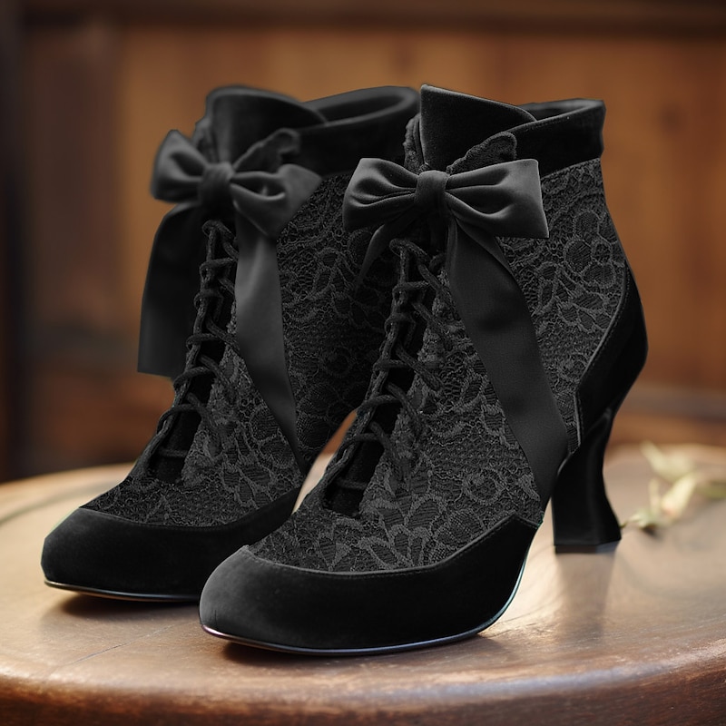 Women's Victorian Green Lace Ankle Boots with Ribbon Ties - Perfect for Vintage Themed Events and Costume Parties 1