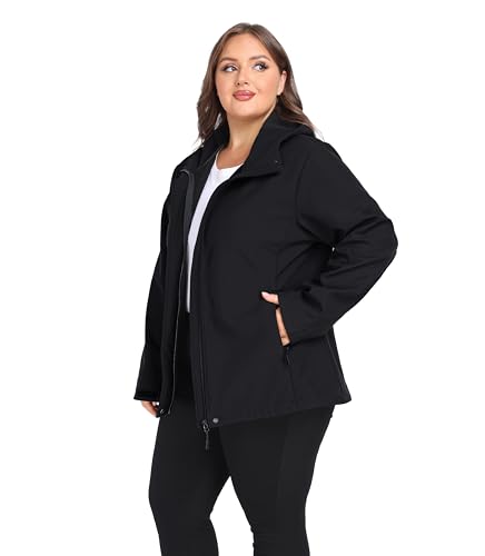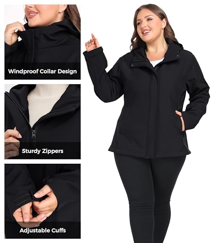 wantdo Women's Plus Size Softshell Jackets Hooded Warm Fleece Lined Windbreaker 2