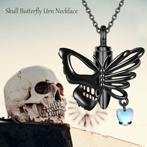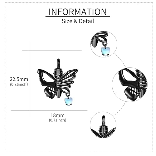 - Chain length: 18+2inch. Skull pendant size: 0.94*0.82inch. 1* 925 sterling silver skull butterfly cremation necklace for women, 1*polishing cloth, 1*exquisite box.
