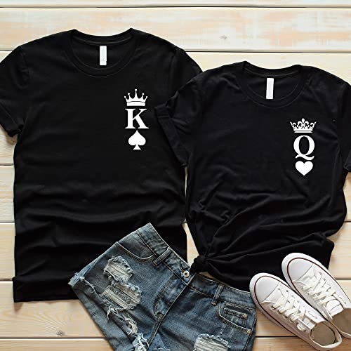 HOT ! King of Spades & Queen of Hearts Pocket Matching His and Hers Pyjama Set with T-Shirt and Bottoms - Couple Matching - Valentines- Gifts Multicolored