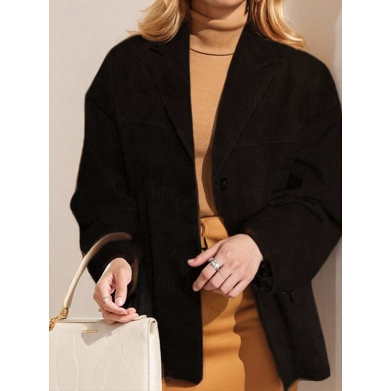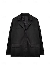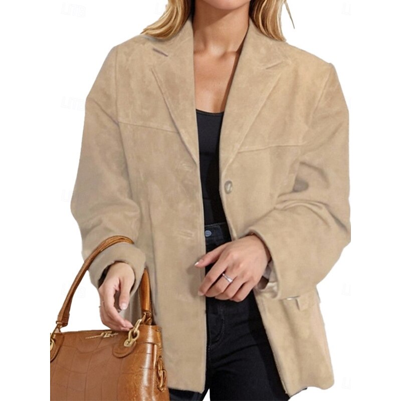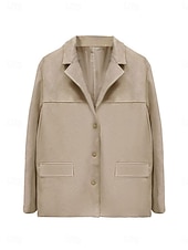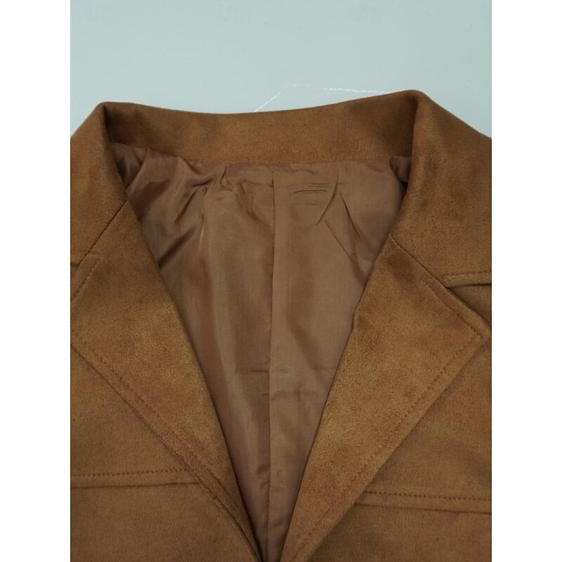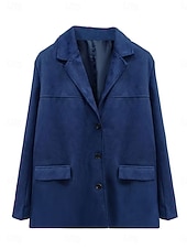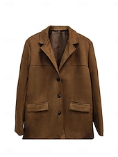 More information about Women's Blazer Comfortable Breathable Pocket Vintage Casual Plain Office Street Casual Daily Wear Single Breasted Regular Turndown Loose Fit Long Sleeve Outerwear Black Brown Khaki Summer Spring