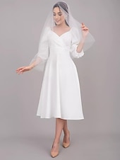 More information about Vintage 1950s Mini Dress Little White Dress Bridal Solid Colored A-Line V Neck Fancy Dress Women's Masquerade Wedding Bridal Shower Bachelorette Party Adults' Dress Homecoming Dresses