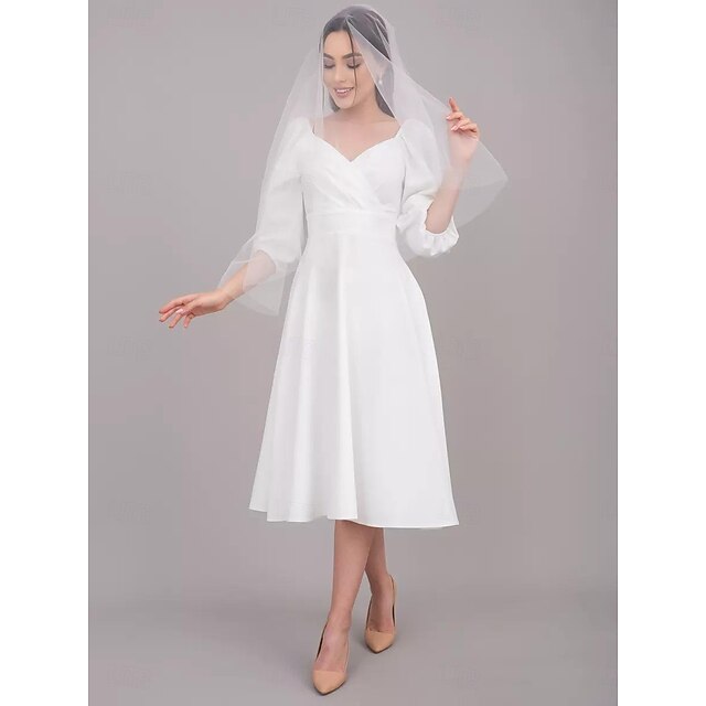 HOT ! Vintage 1950s Mini Dress Little White Dress Bridal Solid Colored A-Line V Neck Fancy Dress Women's Masquerade Wedding Bridal Shower Bachelorette Party Adults' Dress Homecoming Dresses