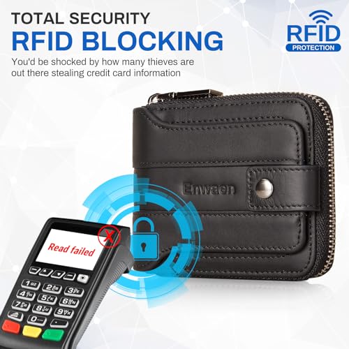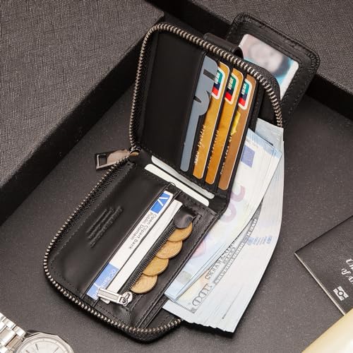Zipper Wallets for Men, RFID Blocking Genuine Leather Bifold Zip Around Wallets Multi with Credit Card Holder