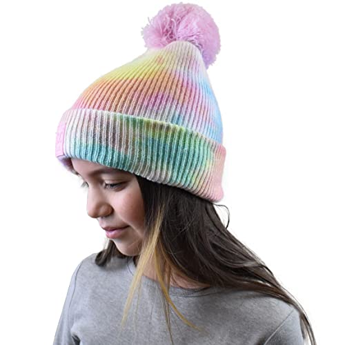 C.C Kids' Children's Winter Thick Knit Tie Dye Pom Cuff Beanie 6