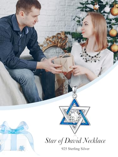 Material: Sterling SilverMetal type: Sterling SilverClasp type: One-LineGem type: Moissanite【Hypoallergenic 14K Gold & Sterling Silver】 Crafted with S925 sterling silver and 14K white gold plating, this star of david necklace features a tangle-free O chain (18+2 extender). Hypoallergenic and nickel-free, it’s ideal for sensitive skin. This exquisite jewelry for women is suitable for a lot of occasion.【Moissanite Brilliance】 The 0.5CT moissanite diamond boasts D-color clarity, radiating 2.65x more fire than diamonds. Ethically crafted and set, this star of david necklace offers sparkle for valentines gifts for her or milestone celebrations. Chose this heart necklace for your mom as a Mother's day gift will be superb.【Star of David Design】 The pendant merges a jewish with blue opal. Its fancy design pairs seamlessly with diamond necklaces or stands alone for minimalist elegance—perfect as anniversary jwerly gifts for women.Show your deep love for her with this heart necklace.【Exquisite Gift】 Gift-boxed with a box, this mothers day gift for mom or grandmother’s heirloom adapts to necklines via an adjustable chain. Layer it for gala nights or wear solo for daily inspiration.Wear this jewish star necklace for many occasions and it will harmonize perfectly!【WTIYM’s Assurance】 We provide complete after-sales service, if you have any questions about this sterling silver necklace for women, please feel free to contact us, we will reply you within 24 hours!We will make your shopping experience truly pleasant!