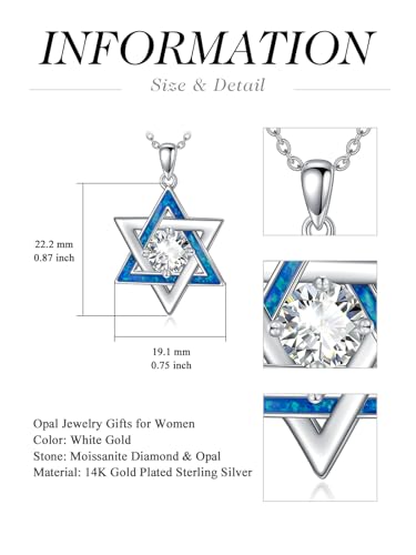 HOT ! 0.5CT Moissanite Diamond Star of David Necklace Sterling Sliver Blue Opal Jewish Star Pendant Brithday Anniversarry Valentines Mothers Day Gifts for Mom Wife Girlfriend