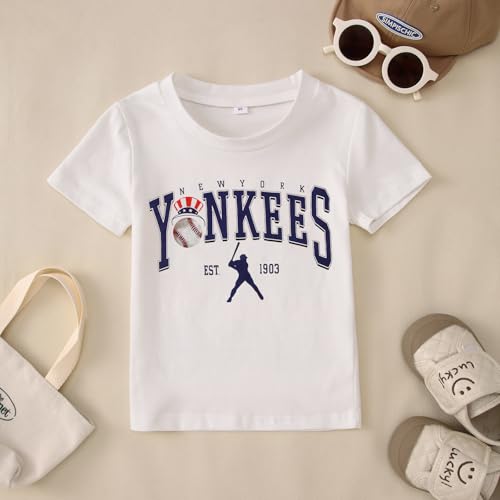 Fabric type: Cotton blendCare instructions: Machine WashOrigin: ImportedClosure type: Pull On⚾Material: Toddler baseball shirt is made of high-quality cotton blend, the fabric is super soft, breathable, and skin-friendly. Baseball graphic tees for toddlers, the lightweight material will make your child feel more cozy and relaxed.⚾Design: Toddler baseball game day shirt, toddler softball shirt, with retro baseball graphic & New York est. 1903 funny letter print, enduring crew neck, kids short sleeve game day t-shirt. Toddler baseball graphic shirt, funny toddler graphic tees, perfect for baseball games, baseball practice, and team activities.⚾Size: Toddler short sleeve baseball shirt, softball game day shirt, fit for 18-24 months, 2-3t, 3-4t, 4-5t, 5-6t kids boys & girls. Kids baseball graphic tees, baby toddler game day graphic t shirt, funny baseball game tees, the best reward for baseball-loving kids in baseball game day clothes.⚾Occasion: Toddler boy girl summer baseball t shirt, fit for baseball games, baseball performance, daily wear, sports, game day, school, vacation, outdoor, photo shoots, and summer beach. Cute toddler baseball tee shirt, perfect gift for your kids, friends' kids, granddaughter, grandson.⚾Package: 1x Toddler boy girl baseball shirt, funny short sleeve tees. Please refer to the size chart before purchasing and choose the most suitable size for your child.