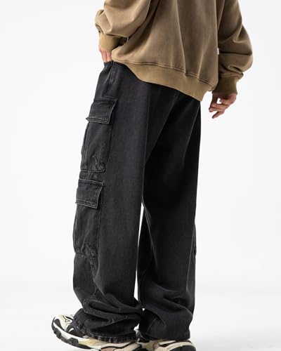 Mens Multi-Pockets Cargo Denim Pants Y2K Hip Hop Jeans Casual Wide Vintage Leg Jeans for Men 4