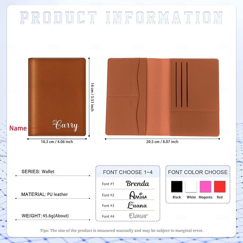$10.99 - Personalized Name Leather Passport Holder Custom Gift, Custom Font and Color Travel Wallet for Business Trips, Study Abroad, Gift for Family Friends Loved Ones 2025. Shop for cheap Personalized Gifts online? Buy at lightinthebox.com on sale today!