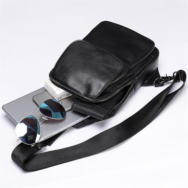 HOT ! Men's Crossbody Bag Sling Shoulder Bag Chest Bag Crossbody Bag Nappa Leather Cowhide Daily Zipper Black